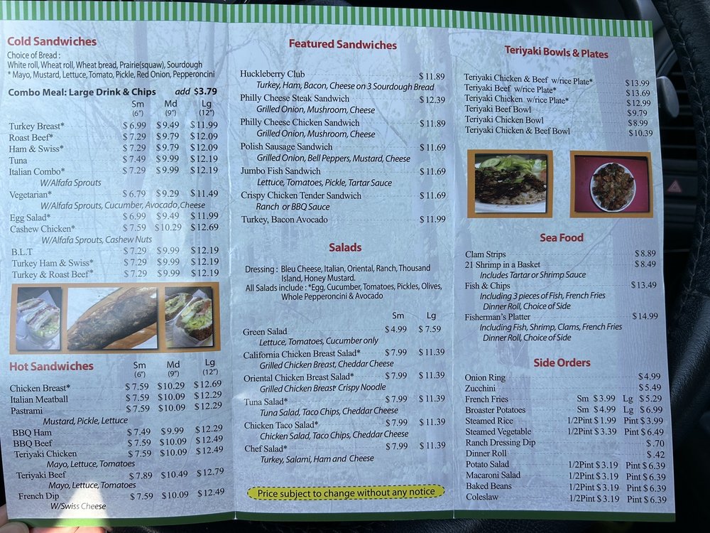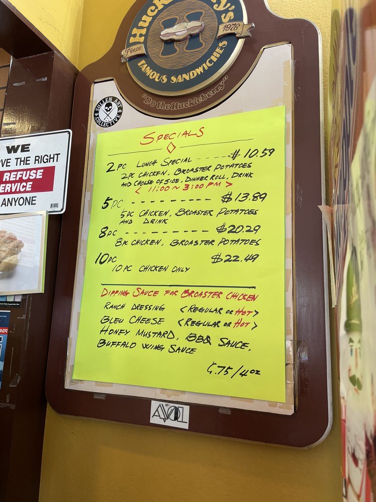 Huckleberry’s Famous Sandwiches Menu (Update 2025)